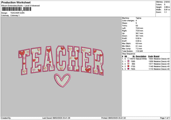 Teachertext 0802 Embroidery File 6 sizes