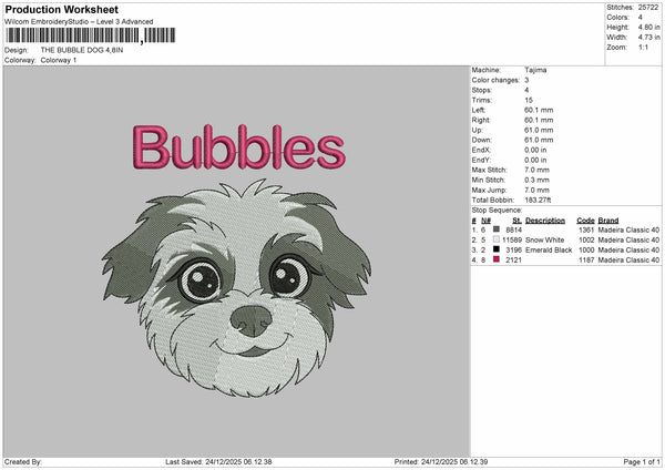 Dog Bubbles Embroidery File 6 sizes