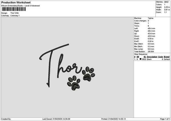Thortext Embroidery File 6 sizes