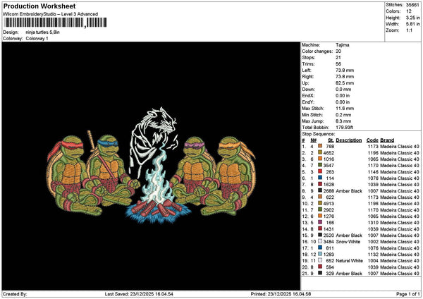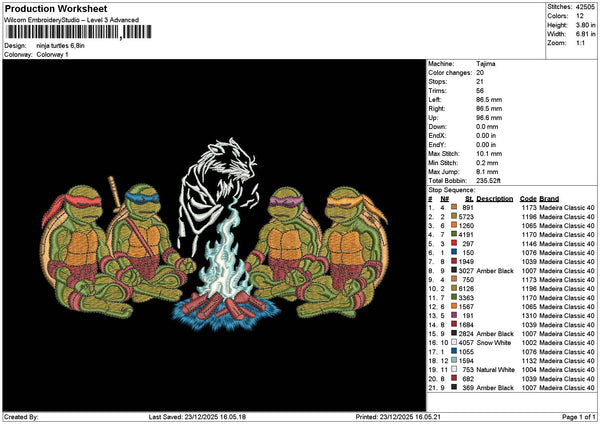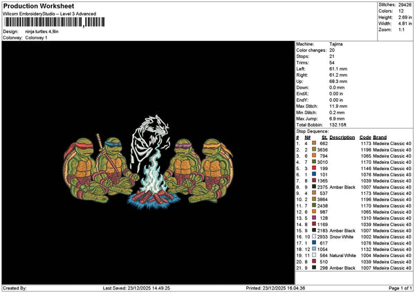 Turtles 2312 Embroidery File 6 sizes