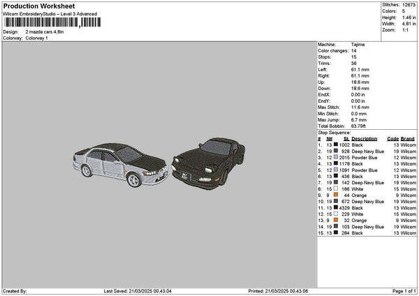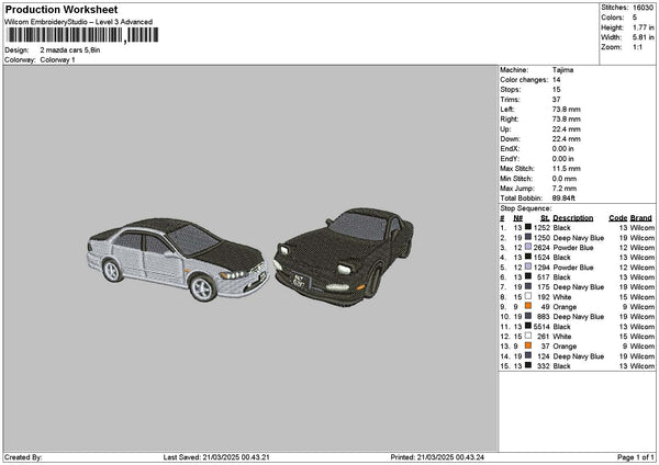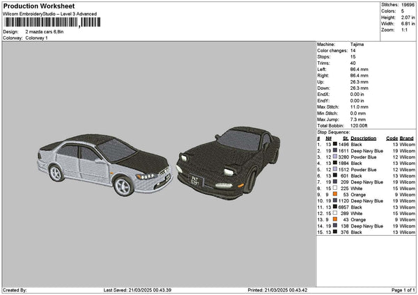 Two Cars 2103 Embroidery File 6 sizes