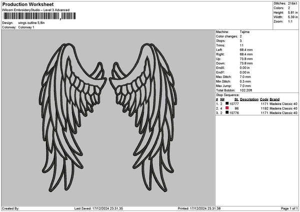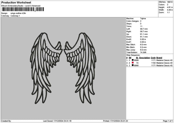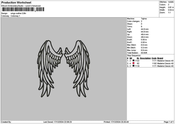 Wings Outline 02 Embroidery File 6 sizes